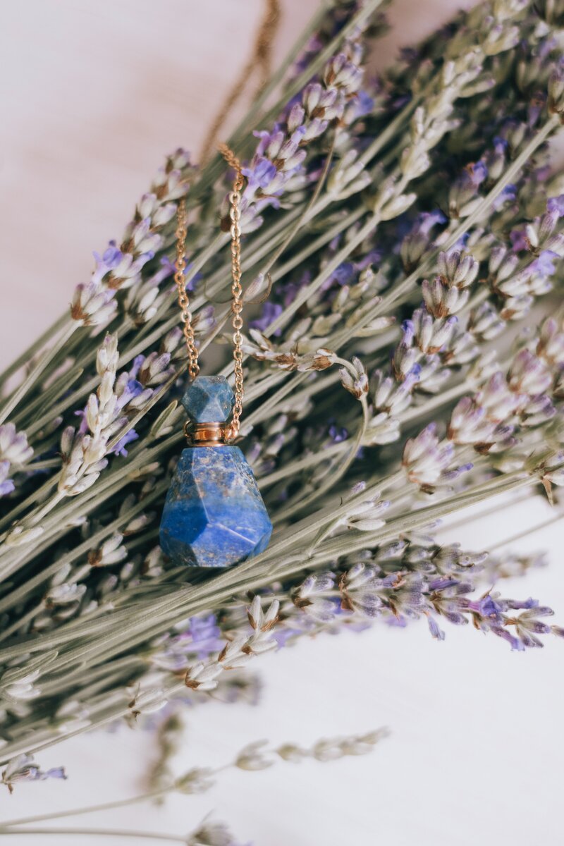 Crystal essential oil necklaces are available for purchase.